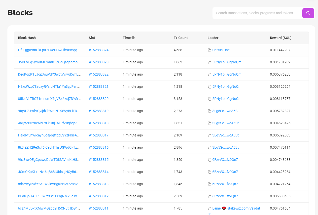 The Blockchain Tab allows you to check out real-time transactions/blocks that has been done and confirmed/verified.