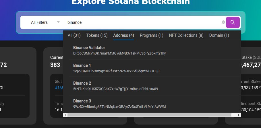 Users can now look for labeled addresses on Solscan by typing the name of the project/exchange and voilà, all results will be displayed for preview.